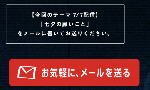 メールでお送りください! 週末になるとあらわれる、こちら「プレイバックほぼ日!」のご案内です。 次回も7日月曜日の夜8時からお届けします。 7月7日、それは七夕。 なのでシンプルに、 「願いごと」をメールで募集します。 短冊に書く、ひとことで構いません。 どうしてその願いごとにしたのか理由を書いていただくのも自由です。 ぼくの願いごとはなんでしょう。 まずはそうですね、 「ひざがよくなりますように」 です。 痛めていたひざはだいぶ具合がいいのですが、尾瀬に行くにはちょっと自信がない。 だれかに迷惑をかけるかもしれない。 なので、これが完治しますように。 もういちまい短冊をもらえるなら本気でこう書きます。 「もっとひろがれ ほぼ日」 あなたはなんと書きますか? 先週のゲスト乗組員 話のテーマは「忘却」でした。 いやぁ、おもしろかった。 未見の方はこちらからどうぞ。 次の乗組員ゲストはだれかな? おたのしみに! 月曜夜8時にお会いしましょう。 メール、お待ちしてますねー。 2025/07/05 22:01 |