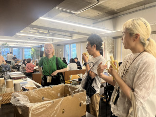 オフィス3階のキッチンに、自由にとって食べていいバナナが箱いっぱいで出されていたのですが、そのバナナ箱の前で