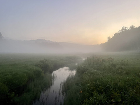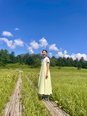 真夏の尾瀬へ。 「尾瀬とほぼ日」メンバー ぬけるような青い空と、 もくもくとしたいかにも夏らしい雲と、ふかい緑。 ‥‥と思ったら、目の前をスイスイとたくさんのトンボが横切って、真夏のようでいて秋の気配がもうすぐそこまで やってきているようでした。 滞在中には、いろんなことをしましたよー。 たとえば、物資を運んでくるヘリコプターから みんなで荷物をおろす、なんていう めったにできない体験をしたり。 (これについては、のちほどあらためて!) yozoraのkazeキャミワンピとシャツを 試着してもらって、感想を聞いたり、ときには、小屋の喫茶室の窓から山の景色をながめつつ、 しずかに集中して仕事をしたり。 なかでも、いちばんのごほうびは、朝のおさんぽでした。 日の出にあわせて小屋を出ると、 あたりは朝もやに包まれて、 それはもう、幻想的で。 鳥たちの声も豊かにきこえてきて、 「ああ、みんな、来れたらいいな」と何度もつぶやいてしまいました。 ふだんの暮らしではなかなか出会えない雄大な自然のまんなかにいるのに、 そこにはちゃんと、過ごしやすい場所が用意されている。 山道を歩いて、やっとたどりつく場所だけど、 だからこそ「ああ、いいなあ!」って 本気で思ってしまいました。 行くたびにまったくちがう表情になる、という尾瀬。 これを書いているのは帰り道ですが、すでに、また行きたくなっています。 2025/08/01 10:01 |