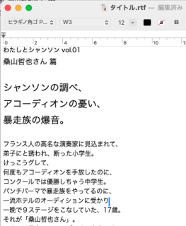 全員おもしろなのだが。 ことしの11月に、演歌歌手の神野美伽さんと一緒に、みんなで歌えるシャンソンの会をやろうと、いまシャンソンについて、いろいろ学んでいる最中のぼくらです。 これまで、シャンソンについて教えてくださいと、アコーディオン奏者の桑山哲也さん、シャンソン歌手のソワレさん、みなさんご存知ROLLYさん、そして昨日はチャラン・ポ・ランタンのおふたりに取材させていただいたんですが。 全員、異様なおもしろさなんですよ。 エピソードが濃厚で、とってもいい意味でふつうじゃないんです。 まずは桑山哲也さんのインタビューがそろそろはじまる予定ですが、いまタイトルを考えていて、写真のような感じにしようかと思ってます。 というか、このタイトルしか思い浮かばないんですよ。 シャンソン‥‥なんだ、このおもしろさは。 もっと取材したい。 「神野美伽さんが歌う はじめてシャンソン」の概要については、 こちらのページにに載ってます。 2025/09/03 17:23 |