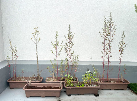うらやましいという感情 雑草部の これは先週末に撮った、 雑草部で育てている プランターたちの集合写真です。 それぞれに、いろんな表情があります。 手前・左にあるのが、わたしが育てているプランターです。 ここは相変わらず静かで、 小さな芽をひとつだけなんとか見つけました。 奥・右が、しゃちょーのプランター。 一番元気です。 手前・右が、じめじめした場所で育てているプランター。 暗くじめじめしたところに置かれているのですが、葉はきれいな緑色をしています。 まわりを見ては、 「いいなぁ。どうしてだろう。いいなぁ。」 と、うらやましくなります。 雑草が生えてうらやましいって 今までなかった感情です‥‥ さて、雑草部へメールを送ってくださるみなさま、ありがとうございます。 たのしみに読んでいます! ほんとうに、いろんな雑草がいますね。 それぞれのオンリーワンな姿を、これからも見ていきたいです。 2025/09/09 16:14 |