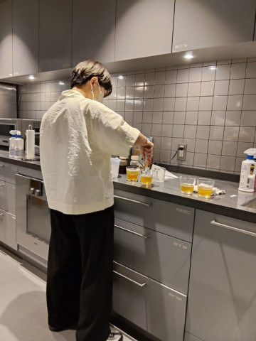 Herbal Honey 試飲会 そう、今日は「草場妙子化粧品店」で取り扱い開始になった、Tamitu(タミツ)のHerbal Honey 試飲会をしてみました。 ソーダに割った「Herbal Honey 000」を、まずは、こちらのおふたりに。 「あ、結構さっぱりしてる。」 そうなんです。 Herbal Honeyは、純粋はちみつに、数種類のハーブとスパイスを調合した、奥行きのある味が特徴なんですが、ハーブ特有の軽やかさもあるんです。 そして、炭酸にもさらっと溶けてとにかく使いやすい! アイスにも合いますよ、とお話すると 「モナカアイスに合わせて食べたい!」 わ!それ絶対おいしいやつです! 本日の夜のおやつ、決定しました。 そして多田さんは、甘ければ甘いほどよいそうで。 「原液がいいかも。」 と、氷と原液の入ったグラスをカラ〜ン! くまさんのような発言ですが、いいですね、のどに垂らしましょう! 次なるターゲットは、食品チーム。 「スコーンやパンケーキにもぴったりで」とお話すると、 「私が粉もの好きだって知ってて言ってます?」 なんと。 無意識に粉ものアピールできていたようです。 最後に、とってもお世話になっている中原さんにも。 「あっ!これは「ビューティー」ですね!」 おお!さすがです! 「000」はビューティーをテーマにしたはちみつでダマスクローズ蜂蜜をベースにした、Tamituを象徴する味なんです。 カフェラテやアイス、お酒にも。 スコーンやサラダ、食事にも合うから、1本あると重宝しそうです。 私はひとまず、モナカを買いに行きます。 2025/09/04 16:02 |
