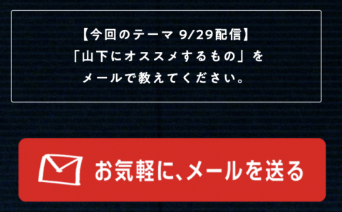 メールで募集。 土曜の深夜にお邪魔します。 金曜日のアレの余韻がいまだにすごいのですが、そればっかりを言ってたら嫌がられるので、切りかえます。 「プレイバックほぼ日!」のおしらせです! 29日の月曜夜8時から、先週一週間のほぼ日をふりかえる、YouTube配信をお届けします。 先週の乗組員ゲストは、 若い仲間との会話はやっぱり新鮮でたのしかったです。 さて、さてさて。 問題なのは今回募集する、メールのテーマであります。 N田さんが考えた、それは、 「山下にオススメするものを教えてください」 です。 ‥‥これはむずかしい。 よくわからないおじさんになにかをオススメをするのはむずかしい。 食べ物? 音楽? 映画? 小説? マンガ? うーーむ。 じぶんだったらよその会社のおじさんにいったい何をススメよう‥‥。 いや、ほんとにむずかしい! そもそも困難なお題なのでみなさま、よろしければで構いません、お気軽に、思いつくままに、ごじぶんが好きなものをオススメください。 ぼくはそれだけでうれしいです。 ちなみに、これを書いている土曜の深夜、いままでの「プレイバックほぼ日!」でもっともすくないメール数です(笑)。 当然だと思います。 それでは。 月曜夜8時にお会いしましょう。 2025/09/27 23:20 |