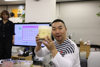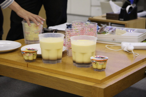 でっかい差し入れ。 昨晩のこと、とある打合せが終わった時間に、差し入れが届きました。 持ってきてくださったのはロフトで家庭用品を担当されている竹若さんと岩井さん。 「みなさーーん! 差し入れをいただきましたー。 で、でっかいプリンです! プッチンプリンです!」 わらわらわらわら(ひとが集まる音) 「比較として市販のプッチンプリンも お持ちしました。 こちらのおおきいのは 牛乳1リットル入れて、 自分で作るものです。 どうぞ、プッチンとしてください」 だれがこの大役を? 「いや、こういうときは 万が一、失敗しても 絵になるあのひとでしょ」 2009/11/05 12:05 |