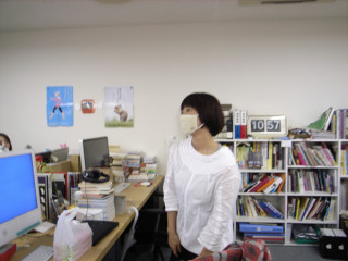 さんのマスクは、いわゆる、白い不織布のそれではなくて、ちょいとかわいらしい布製のやつでした。