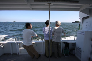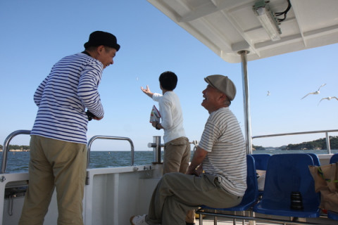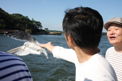 写り込み男 連日好評連載中の「黄昏」、先日まで、松島にいましたが、そのときのお話。 黄昏れる2人の話をわいわいと聞きながら、写真も撮るんですが、松島では大変苦労しました。 その原因は 「カモメにかっぱえびせん」でありました。 カモメにかっぱえびせんをあげると、 「ぱくっ」と食べるのが楽しくなってしまった、 取材中であるのを忘れ、20〜30分ほど、自由気ままに船のヘリを行ったり来たり。 シャッターチャンス!とおもっても、そこには 「おーナイス!」 「だから、おまえじゃないってば。」 「はい、こっちー」 「おーよしよし! よしっ!」 といったような独り言を言いながら、黄昏れる二人の後ろでかっぱえびせんを投げる男。 「黄昏」はまだまだ続きます。 書籍版『黄昏』は旅のお供に相性ばっちりです。 秋の行楽に是非どうぞ〜。 2009/11/06 12:00 |