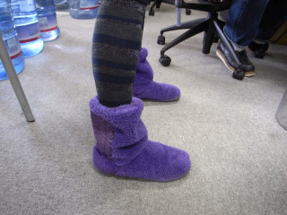 ハヤリということもあるけど、お子がいると、両手がふさがっていて、ぬぽっとすぐ履けるものがたいへん便利だそうで。