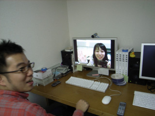 なんだか、楽しいっ! 本日手帳クラブでお知らせ中の 「逢いてぇ人とはITで」。 今日は丸の内ロフトさんとほぼ日をつないでテストをするというのでお店に行ってみたところついついはしゃいでしまいました。 「わ、映った!べいさーーん!」 「こっちも見えてるよ〜」 「あ、モギさんも後ろに見える! おーーい(手をぶんぶん振る)」 「わーーい(手をぶんぶん振る)」 「最初はグーー、 じゃーーんけーーん」 「っぽん!」 「わーい」 画面に知り合いが映っていてさらに話ができるというのは、想像できない感覚ではないのですが、実際にやってみると思っている以上に、興奮してしまいました。 写真は丸の内側から撮ったものと、弊社側から撮ったもの。 けっこうよく映っているし、声もばっちり聞こえるんですよね。 すごいぞ、あいてぃ〜。 すごいぞ、うちゅう〜! 2009/11/13 20:24 |