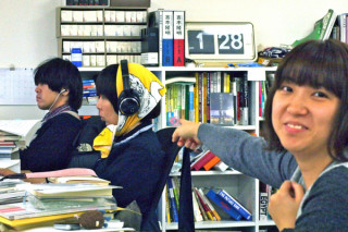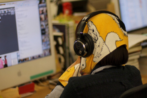 ヘッドホン。 静かな雨の日、仕事がさくさく進みそうな静けさのなか 「もっと静かに!」 という意思表示なんですかね。 隣席は 「玄界灘なんです〜」 ああ、仕事がせっぱ詰まって、締め切りに追われて、限界が近いという意味ですね。 音を遮断したいわけじゃなくて集中するためなんでしょうね。 そんななか話しかけてすみません。 それにしてもずいぶんな 「弱り顔」ですね。 「そら、あかん! せめて、かわいく、 撮ってください〜」 なかなか無理難題を言いますね。 ていうかまだ余裕あるね。 そんな雨の日、静かな日でございます。 2009/11/17 13:33 |