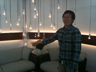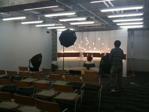 バラの似合う方が! 大ホールで、今日は対談が行われます。 バラの似合う方です。 今日のセットも、もちろん 今日のこのライトは、何をイメージしたのでしょうか。 さすが、照明学科卒業。 電球の中に、めずらしい感じのひときわ大きいものがありました。 こんなの、あるんだ? 「そう、これはね イワシ漁のやつなんだよ」 ああ、船の外側に連なってるやつか! いろいろなものが、ありますなぁ。 と思っていたら、山口工務店の 遠くに見えるので、小さく見えるけど、トーラー(長身)なんですよ、彼。 話はそれましたが、この対談の模様は、もちろん後日、連載になる予定ですので、おたのしみに〜〜〜。バラの似合う方! 2009/11/19 12:58 |