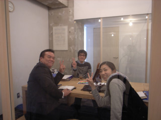 が会議室でミーティングを。