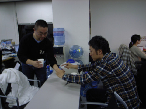 予防。 「うん。ちょっと、あれだな。」 と、 外見はちっともですが、うす〜く風邪の症状めいたものを感じたようです。 「万が一風邪じゃなかったとしても、 予防をして悪いことは、 万に一つもないだろう。」 というようなことを言いつつ、 「僕、ビタミンBあります。」 「あ、じゃ、おかえしに ビタミンCを。」 と、エールの交換のように(ではないか) ビタミンの交換をしていました。 みなさまも、お休みを風邪などで台無しにせぬよう、 「感じたら」予防をぜひ。 2009/11/20 17:31 |
