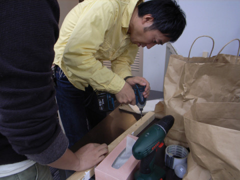 「ミテミテタイム」。 山口工務店の 「ミテミテタイム」をいたします。 今日、 「ちょっと、ナガタさん いいですか?」 と、いわれていたので、なんの「みてみて」かなあとおもってついていってみたら、なんと、仕事ではなく道具の「ミテミテタイム」でした。 えーと、ネジクギを木材などにねじ込む道具の新しいのをかったそうです。 いままでのは「電動ドリル」。 今度のは、 「インパクトドライバー」だそうです。 えーと、ネジネジするだけじゃなくて、インパクトを加えられるので、なんかすごいんだそうだよ。 ブランドは、「マキタ」。 曰く 「マキタのはすごいよ! やっぱり!」 で、 そして、それを慈父のようにみつめる 「 2009/11/25 11:08 |