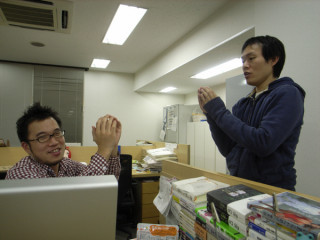 宇宙語。 コンピューター的な、機械的な、そういう、宇宙的な文字列は、弊社では「宇宙語」と呼ばれておりますが、昨晩、 (宇宙部のほかにも、デザイナーは、 宇宙語をa littleです。) しゃべってるついでに、宇宙語の一部を手で表現をはじめました。 「じゃあ、それを()でくくるの?」 「そう()で。」 「;も必要?」 どうやら、すごく分かりやすい話になっているようです。 ものすごいわかりにくい話でした。 すみません。 2009/11/27 13:00 |