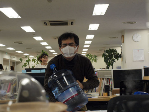 風邪なのに、事務所の巨大飲料水ボトルを取り替えようとしています。