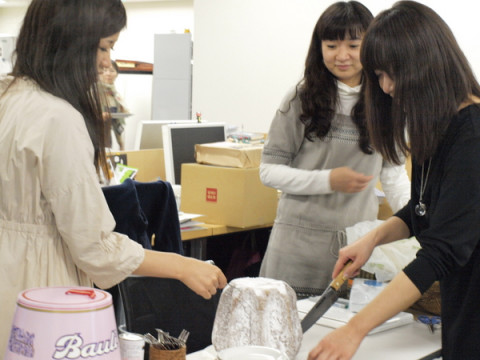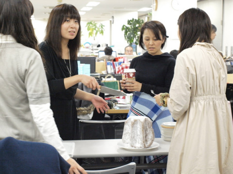ワイルドな女たち2 「いただいたケーキいかがですか〜?」 と、おっとり口調でナイフを手にする 「どうやって切ればいいの〜、ふふふ。」 おっとりしているが、手元があやしい。 「押さえた方がやりやすいですよね〜。」 ゆっくりしている分、異様でおそろしいです。 そして、今回もワイルドな女たちの中に前乗り男子代表として、 ワイルドな女たちが切り分けたケーキは、とてもおいしかったです。 ごちそうさまでした。 さあ、もういっちょ、がんばるぞ! 2009/12/03 17:22 |