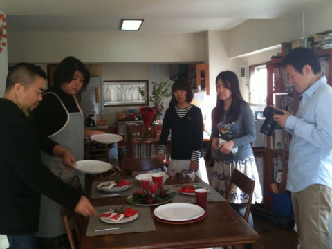 飯島さんのアトリエでおうちでやるクリスマスパーティーのテーブルコーディネートを教わっています!