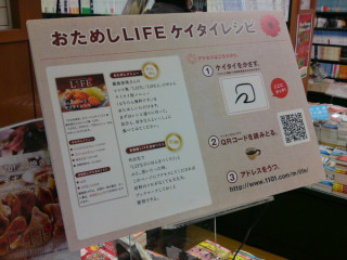 おためしレシピ公開中! 飯島奈美さんのレシピでチキンとケーキをつくって大好評だった。 「メリーおうちクリスマス!」 中でも評判だった 「クリスマスチキン」は 「おためしLIFEケイタイレシピ」でも公開中です! 「クリスマスチキン」は鶏を一日寝かせる必要がありますから今晩、準備すれば、明日のクリスマスディナーに間に合いますね。 食材リストもついてるからお買い物の時もメモを持ち歩く必要もなくてとっても便利ですよ〜! リブロ池袋本店と三省堂書店大宮店では携帯電話をかざすだけでアクセスできる 「おためしLIFEケイタイレシピ」」 特設コーナーを展開中! 「意外にみんなケータイを かざしていくんですよ」 と、こちらも評判なんだとか。 2009/12/24 15:00 |