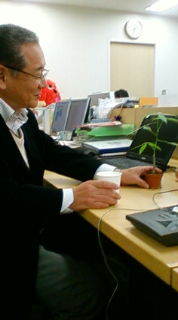 が、帰宅前、なんともいとおしそうに机上の植物を見つめています。