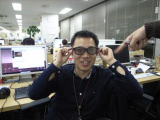 さっそく、弊社のメガネ男子(いいお年)二人にかけていただきました。