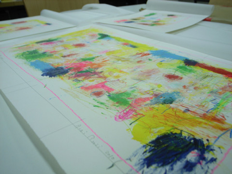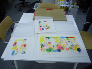 あたまのなかにある公園。 永田です。 昨日、お伝えしたとおり、『小さいことば』シリーズ第四弾は『あたまのなかにある公園。』というタイトルに決まりました。 発売はまだまだ先ですが、いろんな要素が少しずつかたちになりつつあります。 たったいま、イラストが届きました。 もったいつけずにどんどん発表しますが、『あたまのなかにある公園。』は全体の装丁に描きおろしのイラストを使うことにしたのです。 イラストをお願いしたのは、荒井良二さん。 写真に写っているのは、たったいま、荒井さんが仕上げてくださったばかりのものです。 ‥‥‥‥すごいっっっ!!! 一見、カラフルな色だけがあるようで、よく見るといろんなイメージが繊細なタッチで描き込まれているのです。 「あ、ブイヨンがいる!」 「ここになんかかわいい人が‥‥」 「見れば見るほど いろんなものが見えてくるね」 原画を汚さないように注意しながらみんなでしばし、鑑賞。 気が早い、と思われるでしょうが、いい本になりそうです。 業務連絡:清水さん、藤井さん、原画、かなり繊細です。 デザイン&印刷、腕の見せ所ですよー。 2010/01/07 21:36 |