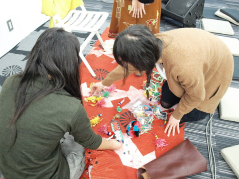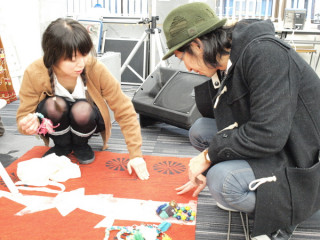 「キリンの夜。」製作中! 今夜は、おおはた雄一さんの 「キリンの夜。」のライブ中継の日。 こちらは、急遽、舞台装飾をしてくれることになった、女の子4人組、「sunui」のみなさん。 「黄昏」に曲を提供してくださったクラムボンのグッズデザインなどもしているんですよー。 きゃっきゃっしつつもがっつりと会場を作り込んでいってくれてます。 かわいいボンボンたちはどこに使われるんだろう? おおはたさんも興味しんしんのようです。 小耳にはさんだ情報によると、開演前には弊社きってのいい声、 「キリンの夜。」の中継は、20:30に開場、21:00開演予定! あんなゲストやこんなゲストもいらっしゃいますよ。 チケットのある方も、ない方も自由にご覧いただける生中継ですのでどうぞお見逃しなくー。 2010/01/08 17:35 |