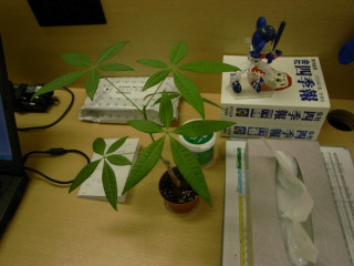 コギーのパキラ 読者のあずいちごさんから、こんなメールをいただきました。 ほぼにちわ〜♪ 年末に名残惜しそうにしていらした小木曽さんの植物さんはお元気でしょうか? 我が家の植物達も寒さに負けず元気にしております。 そうそう、年末に 初日は葉っぱの先が少しだけしおれていたのですが、水をやったら、このとおり。 新しい葉っぱも出てきそうです。 ちなみにちょっと席替えをしまして、 新しい並びはこんな感じです。 ちょっと寂しいですが、パキラのこと、まかせたー! 2010/01/08 19:03 |