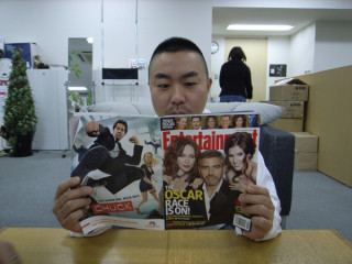 さんのお土産の、ゴシップ雑誌とクッキーがあった。