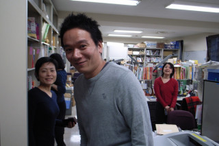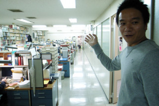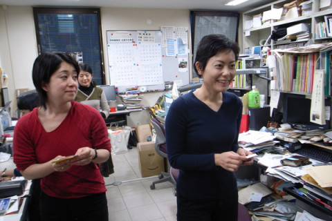 新潮社に行く それは、昨日のこと。 「黄昏」出張編、が掲載されている 雑誌『旅』の編集部さんにお礼がてら、お邪魔してきました。 我々、黄昏チームと一緒に出張ツアーに同行してもらった、編集部の松本太郎さんに案内してもらいながら、わくわくしながら社内見学です。 太郎さん 「こちらが、文字や、 事実関係があっているのかを 確認する校閲室です。(小声)」 「お〜〜!」 「まさに校閲してます。 という静けさだね〜。 騒いじゃだめよ。」 はい‥‥‥‥‥。 太郎さん 「で、ここが『旅』編集部です。」 「わー旅っぺー!」 編集部のみなさんに挨拶しながら、一騒ぎしてまいりました。 「旅っぺー!」 その帰りに、松家さんにちょっとだけお会いしてかえって来ました。 「黄昏」出張編、本誌の旅感から雰囲気が俄然浮いておりますが、中身はいつものようにのんびりしております。 是非読んでみてくださいねー。 2010/01/22 14:14 |