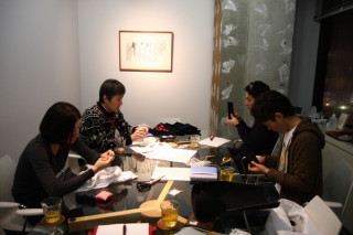 夏にむけて。 昨日の東京は雪のふるような、さむーいお天気でしたが、そんななか、もう、夏に着たい服について、考えてるひとたちがいました。 服チームのメンバーです。 ファッションデザイナーの平さんと一緒に、ことしのTシャツのデザインについていろいろと検討中なのです。 よく集まって、あれこれアイデアをだしています。 昨日のミーティングではみんなで試作品を制作。 お裁縫をしているひとがいるとおもえばなにかを木槌で叩いているひとがいたり‥‥ミーティングというよりは、なにかの工房みたいなふんいき。 どんなTシャツになるんでしょう〜? まだまだあったかい服を着たい時期ですが、ひきつづき、半袖のことを考えていきまーす。 2010/02/02 17:16 |