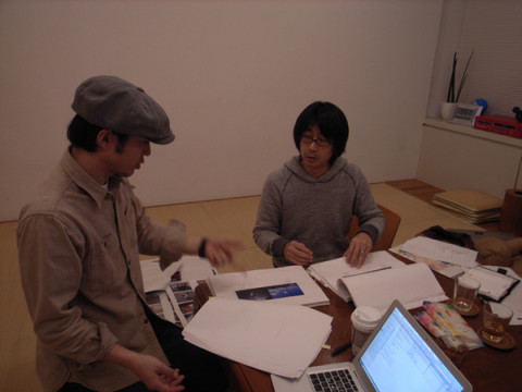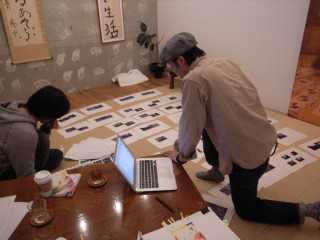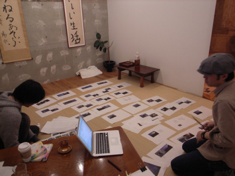 シャッフル! 「あたまのなかにある公園。」 先日までは、原稿の完成までのプロセスをお送りしておりましたが、本日は、写真の部とがっちゃんこの様子です。 永田の原稿と、ゆったりした写真の指定をもって、清水さんがページのレイアウトを持ってやってきました。 1時間前には、順調に確認をしていたんです。 が、しばらく和室から離れていたら、永田が呼びに来ました。 「あのねえ、深みにハマりだしたよ。 俺たち。 写真の場所をかんがえてたらさ‥‥。」 和室にいってみましたら、なんだか、前にみた風景になってます。 プリントが、ぶわーっと和室にならんでいました。 いや、でも、この作業は、毎年のことじゃあありませんか。 深みにはまってぐるぐるして、そんでもって、入稿ですよ。 業務連絡:凸版藤井さまそんなわけです。 しばしお待ちいただければ! 2010/02/09 23:02 |