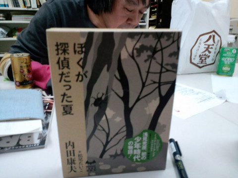 続そぶちゃん 祖父江慎さんの事務所からの中継について何通かメールをちょうだいしました。 ありがとうございます! スガノさん、『ことば観察にゅうもん』、すてきなおみやげよかったですね。 この本、月刊絵本で出た3年ほど前からわが家のお気に入りです。 当初、5歳の娘には早すぎるかと思いましたが、さにあらず、あっという間にとりこになりました。 言葉のセンスを磨き、おもしろがる、ふしぎがることを教えてくれる好著です。 このたび傑作集としてハードカバーになってめでたいかぎり。 (n)さん 持ち帰って熟読したんですが、やはりかなりおもしろかったです。 (Kei)さんからは、 「スガノさんが小学生に見える」 というメールも。 いえいえ、背後に妖怪がいる、という設定でしたので(写真1枚目) 無邪気に笑ってみせたのです。 いっぽう2枚目の写真は、 「巨人と小さな人という設定で 撮ってみよう!」 ということで撮影したのですが、うまくいかず、掲載を見送りました (が、いま載せます)。 こんなことをしているからそぶちゃんは、打ち合わせが長引いてしまうのですね。 手にしているのは祖父江慎+コズフィッシュ装丁の『ぼくが探偵だった夏』。 局地的ブームを呼んでいる本です (個人調べ)。 3枚目に映っている本のカバーと、本物はどこかがちがいます。 さて、どこでしょう? こちらをご参考に! 2010/02/10 16:09 |