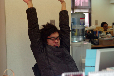 フリーズしたトリイくん 朝、出社したら、あきらかに雰囲気がおかしいので、その原因は何か、風景を探ってみたらそれは 机で、座ったまま固まっているのです。 訊けば、 「朝10時からずっと、この状態です」 らしいです。 原因は「ファイルを保存せず削除」です。 デザイナーだけでなく、あらゆるみなさま、このご経験をお持ちではないでしょうか。 「ファイル数にすると3つなんですが、 30個ほどカラーバリエーションを作って そこから間引こうかな、と思って コピー&ペーストしようとしたら アプリケーションが固まりました。 ああ、なんで保存しなかったんだろう」 アプリケーションが固まったからといって、いつまでも自分が固まっているわけにはいかないよ、そのフリーズタイムはぜったいに必要だけど振り返ってみれば無駄である、と言いましたら、トリイは素直に 「そうですね、何もしてくれませんでした」 と伸びをして、作業を再開しました。 ヒザの毛布がせつないです! 2010/02/19 12:13 |