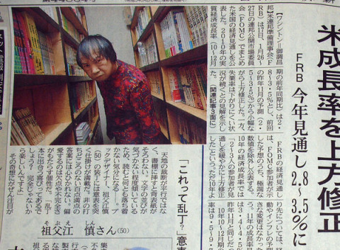 そぶちゃんが一面に 昨日、読者の方からお知らせをいただいていました。 本日の日本経済新聞の夕刊一面に 「そぶちゃん」がでています! しかめっ面をよく掲載したな〜って笑ってしまいました。 (Liku) 今日家に帰ってきたら、日経新聞の夕刊の一面にそぶえさんがでてました! 真剣?な表情で写真に写っていらっしゃいました。 びっくり&なんだか楽しかったのでおしらせしました。 (lotta) 遅まきながら、今朝確認しました。 ‥‥そぶちゃん! 日経新聞の一面に岡本太郎さんばりの、にらみ顔で! いい写真だなぁ。 2010/02/19 12:58 |