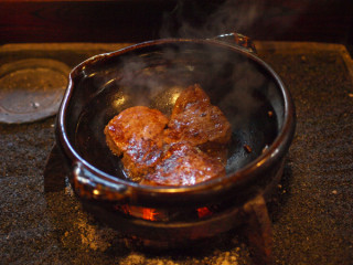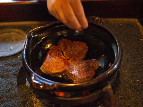 ステーキも焼けますよー。 佐渡のわら鍋敷きは完売いたしましたが、昨日販売を開始した土楽の「ベア1号」「ベア2号」は、まだ在庫がございます。 とはいっても、一点ずつ手づくりをしている陶器ですので、追加生産は、すぐにはできません。 もし迷っておられましたら、 どうぞこの機会にお早めに! ところで、今回の料理写真にはありませんでしたけれど、 「ベア1号」「ベア2号」は、煮るという基本的な使い方のほかに焼くという使い方も、できます。 使う前にお粥を炊いて、そのあと、4〜5回、汁ものをしたら、ぜひ「焼く」道具として使ってみてください。 この写真は、以前に撮影した伊賀牛のステーキ。 伊賀牛を使ったからおいしいんでしょ、というだけじゃなくて、土鍋で焼くと、火の通り方が、いいんですよー。 ちなみにステーキは 「肉をクッキングペーパーで つつんでひと晩おく」 「焼く前にすじを切り、 常温にもどす」 「塩こしょうは、あとから」。 これ、土楽の福森さんも、『LIFE』の飯島さんもほぼ同じことを言ってました。 ‥‥おなかすいたぁ。 2010/02/19 19:32 |