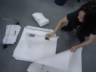 初稿がでたよ。 編集者は相変わらず、 「カフェ五輪」でメールの滝にうたれておりますので、 「あたまのなかにある公園。」は、ぼちぼちと進めてまいりますかね。 本日、初稿が出ました。 もう、初稿が出てしまったのです。 早いもんです。 これから、ゲラを切りまして本の状態にして、 「カフェ五輪」に届けたり、著者に読んでもらったり、などいたすのです。 切るぞ! おお〜! 【業務連絡】 ◆ ◆凸版藤井さまカバー、表紙、扉まわりの出稿の時間がわかり次第ご連絡くださ〜い。 ◆清水さまさきほど、バイク便をだしました。 いま出てるのは、本文だけです。 2010/02/24 15:42 |