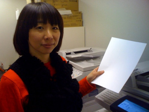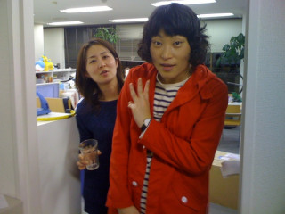 赤い服 まだ社員研修中の投稿が不安なもので、ひきつづき携帯からの投稿です。 何かネタはないかなあと携帯片手に社内をぶらぶらしていたら、コピー機から用紙を取り出そうとしているスガノを発見。 イラストを描くときは、いつもコピー用紙を使うんだそうです。 もたもた写真を撮っていたら、コピー室の入り口が混んできました。 と思ったら、今日のスガノとヤエ、なんか、ま、まぶしい。 ヤエいわく、 「赤い服を着ると、 元気が出るって言うやーん。 ふぁっははははっ」 だそうです。 たしかに元気だ。 2010/03/01 19:12 |