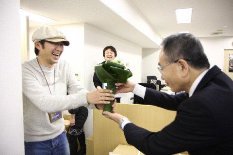 祝・帰国 本日、 「観たぞ、バンクーバーオリンピック!」も幕を閉じました。 (本日は、ページの最後におまけの エンドロールもございます〜) 男子1000ラインスピードタイピングの 先程、帰国の祝賀会が開かれました。 バンクーバーオリンピックのファンファーレとともに 花束が そして、山口工務店特製の金メダルが、 そして、 「永田くんの帰国を祝って、 万歳三唱!」 の掛け声の元、ばんざ〜い! ばんざ〜い! ばんざ〜い! って、どんだけお調子者なのか、我々‥‥。 これをもちまして、 「ほぼ日」のバンクーバーオリンピックのプログラムは全て終了いたしました。 みなさま、本当に、本当にたくさんのメールをありがとうございました! 2010/03/02 11:42 |