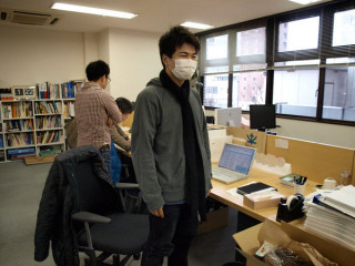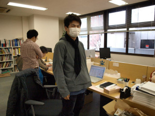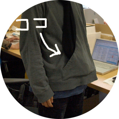 ほうじょうのポッケ 朝のミーティングが終わった後に、わたしは妙なものを目撃してしまいました。 とにかく気になったので、すぐに声をかけました。 それ、なんで?? 「長いから〜」 写真3枚目を見ていただくと、たしかに長くて、パーカーのすそよりも長いことがおわかりいただけるかと。 しかし、いつもそこのポッケにしまうの? 「はい、長いときには、しまいます」 変わってる! すっごい変わってるよそれ! 長くてじゃまということですかね。 おもしろいね、ほうじょうくんのポッケ。 花粉症、お大事に。 2010/03/10 16:11 |