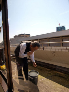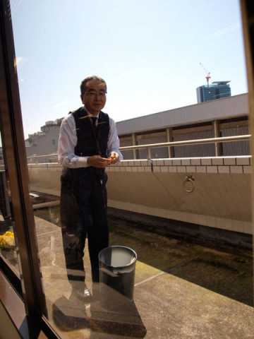 ベランダカサイ。 朝から、おもむろにベランダに出る 黄昏れているわけではありません。 しかも、手ぶらではなく、ゴミ箱を持って。 毎日「止まらない」とつぶやきながら、落花生を食べてらっしゃいます。 ゴミ箱も、落花生の殻でいっぱいの日々。 そこからこぼれた殻のカスが実は社内の床に散りばめられています。 それを、気にしたカサイは、いよいよ、ベランダへ出て、落花生を食べる。 という作戦に出ました。 新しい!! 風でカスが舞い上がっていましたが、よかったね。 やっぱり目が離せません。 2010/03/11 11:52 |