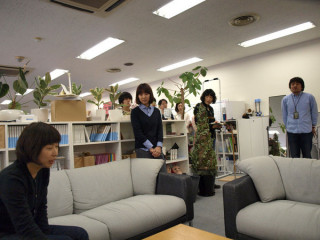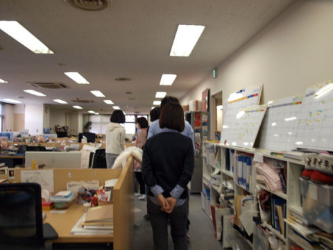 金曜日の集まり 「みなさーん、 金曜日の朝のミーティングを はじめますよ」 今日の司会は、笑顔怪獣のスギちゃんですよ〜。 「なにか報告や、 相談したいことのある方!」 「ハイッ! 22日月曜日に、 会いてー人とは、ITで。を行います。 みなさんよろしく」 全員 「はいぃぃ! たのしみ」 「みんな、忘れてるかもしれないけど、 ええ、忘れてるでしょう、 月曜日はあるコンテンツのための 締切があります。よろしく」 全員 「ひゃーー、そうだった、そうだった」 「あと、お知らせがいくつかあるので お伝えしますね」 などなどとつづき、本日の朝のミーティング、終了! 今日一日で、今週が終わります。 がんばっていきましょう。 (全員、どやどやどやと席に戻る) 2010/03/19 12:11 |