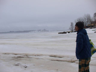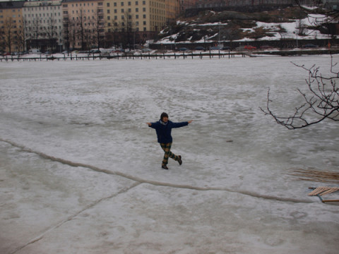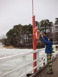 (おしまい) 完全にイースター休暇のヘルシンキ、4月4日の日曜日です。 NAPAギャラリーもお休みなので福田さん、森下さんといっしょにヘルシンキ観光をすることにしました。 といっても、街中はお店が閉まってるのでバスに乗って、動物園に行ったり、郊外の森に行ってみたり。 画伯、凍りついた川を見て走り出し、氷に乗って妙なポーズを‥‥。 あの、浮かれるのはいいですけど、そこ、ヒビ入ってますけど? 春が近いこの時期にそういうことするのはすっごく危険だと思いますけど? 「でも、あっちで釣りしてる人もいるし」 この時期ヘルシンキを訪れるかた、真似しちゃだめですよ! さらにライフワークである 「フォト絵」のための写真を撮ったり、森のリスにビスケットをあげたり、日本は深夜一時だというのに 「やっぱやめました」と。 何話そうとしてたんですか? 「いや、あの、 山下さんの奥さんに そっくりな人を 街で5回も見かけたんですよ! だから、報告しなくちゃと思って」 そ、そうでしたか。 君らの友情、理解しにくいわ。 ま、帰ってゆっくりな。 それにしても、福田さん、来てよかったですねぇ。 ずいぶん受け入れられてた、っていう印象でしたよ。 相性がいいのかもしれないですよ。 また、来られると、いいですねー。 え? いっそ住みたい? そんなにこの国が好きになったんだ?! ふうむ、それもいいかもしれないですね。 そうなったらこんどは というわけで、まだ寒いヘルシンキの休日をすごしたわれわれ、月曜日の飛行機で東京に戻ります。 到着は火曜日です。 おつかれさまでしたー。 2010/04/05 04:00 |