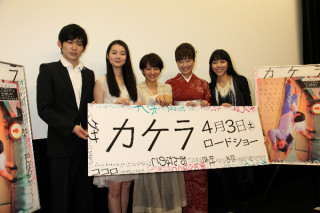 『カケラ』を観た! それは土曜日のことでした。 場所は渋谷の「ユーロスペース」。 しばらくしたら「ほぼ日」にご登場する安藤モモ子さん。 初監督作品の上映がはじまったので、映画のご案内だけでも先におしらせするために取材&感激に行ってきたしだいです。 主演の満島ひかりさんと 中村映里子さんもきらきらしてて。 という雰囲気でしたよね。 山下さんは? でもここで感想を言いはじめると たいへんなことになっちゃうよね。 目がはなせない! ちなみにこの写真はすべて、 「フィンランドのおじさんになる方法。」 でおなじみ、 松井康一郎さんによる撮影です。 松井さんはこの日の催しの 公式カメラマンだったんですよ。 徐々に全国の映画館でも 上映されていきますので、 スケジュールのくわしくは 公式サイトをご覧くださいね。 以上、映画のおしらせでしたー。 ※上から3枚目の写真で、お名前をご紹介。 右から、安藤モモ子監督、 かたせ梨乃さん、満島ひかりさん、 中村映里子さん、永岡佑さん。 〈写真/松井康一郎さん〉 2010/04/05 22:00 |