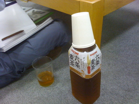 誰がいつミーティングに参入してもいいように、ということでしょうか、麦茶には紙コップがいくつかさしてあります。