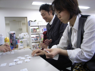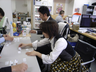 今日のシャッフル。 毎度おなじみ、 「ほぼ日」のホームのコンテンツの並び順をかんがえる「シャッフル」ですが、今日は、おかしなゲストをお呼びしました。 「わたし、シャッフルはじめて。きゃ。」 「あ、どんどんめくったら、 どんどん重要なコンテンツがでてきて。」 「あ、スペースがたりない。」 「名刺みたいに、ちょっとこれを よけておいてね。」 「あ、列が列が乱れた。」 など、おしゃべりされています。 なぜかカメラを向けたら膨らみました。 それはさておき、今週は、土日もなかなかコンテンツ大盛りでおとどけしようとおもっております。 2010/04/09 13:00 |