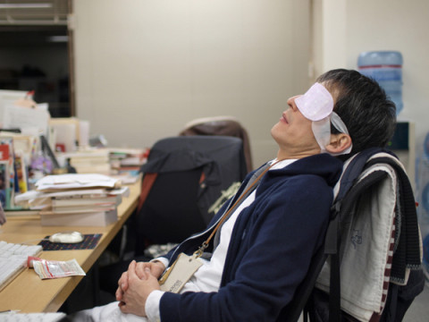 となりのハリー。 や、ま、いいんですけどね。 「めぐりズム 蒸気でほっとアイマスク」がじつはいま、弊社の中年男のあいだで流行っておりまして。 といっても なんですけどね。 (ぼくはフィンランドまで持ってきました。 山下は劇場に持っていき 開演前の15分、席でこれをやってました) でその 「目、つかれてない?」と未体験者のところに来るわけです。 きょうはとなりの席の 「かいらく」には一家言ある人ですしなにせ「21世紀健康増進革命連合」だっけ、弊社の保険委員長でもある男ですから、こういうのは逃せないわけです。 で‥‥寝ちゃいました。 いまとなりからくうくうという寝息が‥‥ 別にいいんだけどね。 2010/04/09 19:32 |