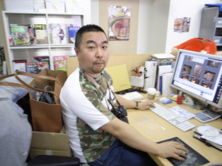 シェフが、コツコツと写真の整理をしている。