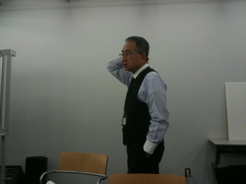 がしゃべりながら、おもむろに、立ち上がり‥‥ジャケットを脱ぎ‥‥また、席に座りました。