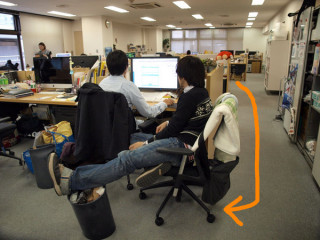 でもね、あんなに遠い自分の席から椅子ごと、デザイナーの席にやってくるのはけっこうすごいことだと思います。