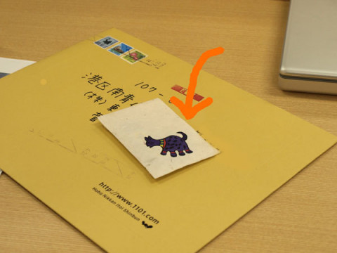 USBメモリで原稿をやりとりしているのですが、詩人は今回、メモリをこのポチぶくろに入れて送ってこられました。